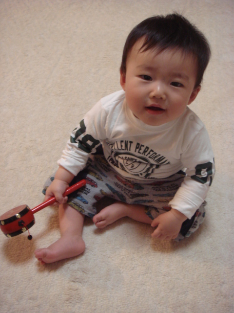 昼からママ友があ遊びに来ましたそうくんもお友達がきてすっごいうれしそに遊んでいましたママ友が巻き寿司とカフェ・ラテ持ってきてくれてごちそうさまでした夕方に近所のママ友も遊びに来ました子供3人集まるとにぎやかで楽しかった案の定みんな帰るとそうくんおお泣きでしたそうくんは今日からこれにハマってますしょうたパパのお母さんが去年東京のお土産で買ってきてくれたでんでんたいこ今頃興味を持ちはじめました鳴らすのは下手です楽しい1日でしたtemplate-まりもん img-candied