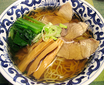 最近、オンタイムでは豚骨ラーメンにハマッている。今年の猛暑は豚骨で乗りきったが……、休日、昼頃に起き、疲れた身体と相談して考案した身体にやさしいメニュー、『和出汁らーめん+鶏炊込みごはん』です。今回の麺は市販では一番お気に入りの横浜中華街、永楽製麺所の伊府麺。【和出汁らーめん】・スープ/水、昆布、アジ節、カツオ節、干椎茸・薬味/とろろ昆布、きざみネギ、ミョウガ・調味/酒、薄口醤油、塩(天塩)、なたね油純和風出汁だけのスープになたね油を大サジ1(一人分で)ぐらいたらすだけ。永楽のシコシコした伊府麺にとろろ昆布がからみ、潮の香りが楽しめる。ミョウガの刺激が、食欲をそそります。【鶏炊込みごはん】・出汁(上記のスープ)、酒、薄口醤油 ※濃いめの御吸い物くらいの味付けに・地鶏の胸肉(みじん切り)、干椎茸(みじん切り)※上記スープで使ったもの・米適宜以上を炊飯器で炊く。永楽の麺は無添加で安心。なたね油も自然食品店のものを。地鶏も胸肉を使うことで繊細な味の炊込みごはんになる。らーめんのスープはあらかじめ人数分より多めにつくり、直接調味してしまうのがコツ。プロのようにどんぶりにタレを入れてスープをはるよりも味がぶれない。あまったスープは夜の鍋物に応用する。※伊府麺:水も使わず卵だけで練り上げる卵麺。本場中国広州で一番高級と自慢される麺。清朝の乾降年間(1736~58年)に揚州で役人だった食通、伊乗綬(イトンフォウ)が退官後に広州に戻り『春草堂主人』と名のり食三昧にふけり、考案した。伊さんの家(府)の麺ということで伊府麺という。別名全蛋麺(チュアンダンメン)といい、上海あたりでは鶏蛋麺(チータンメン)と呼ぶ。 人気blogランキングへ ←つまらないから、他のブログを見る!