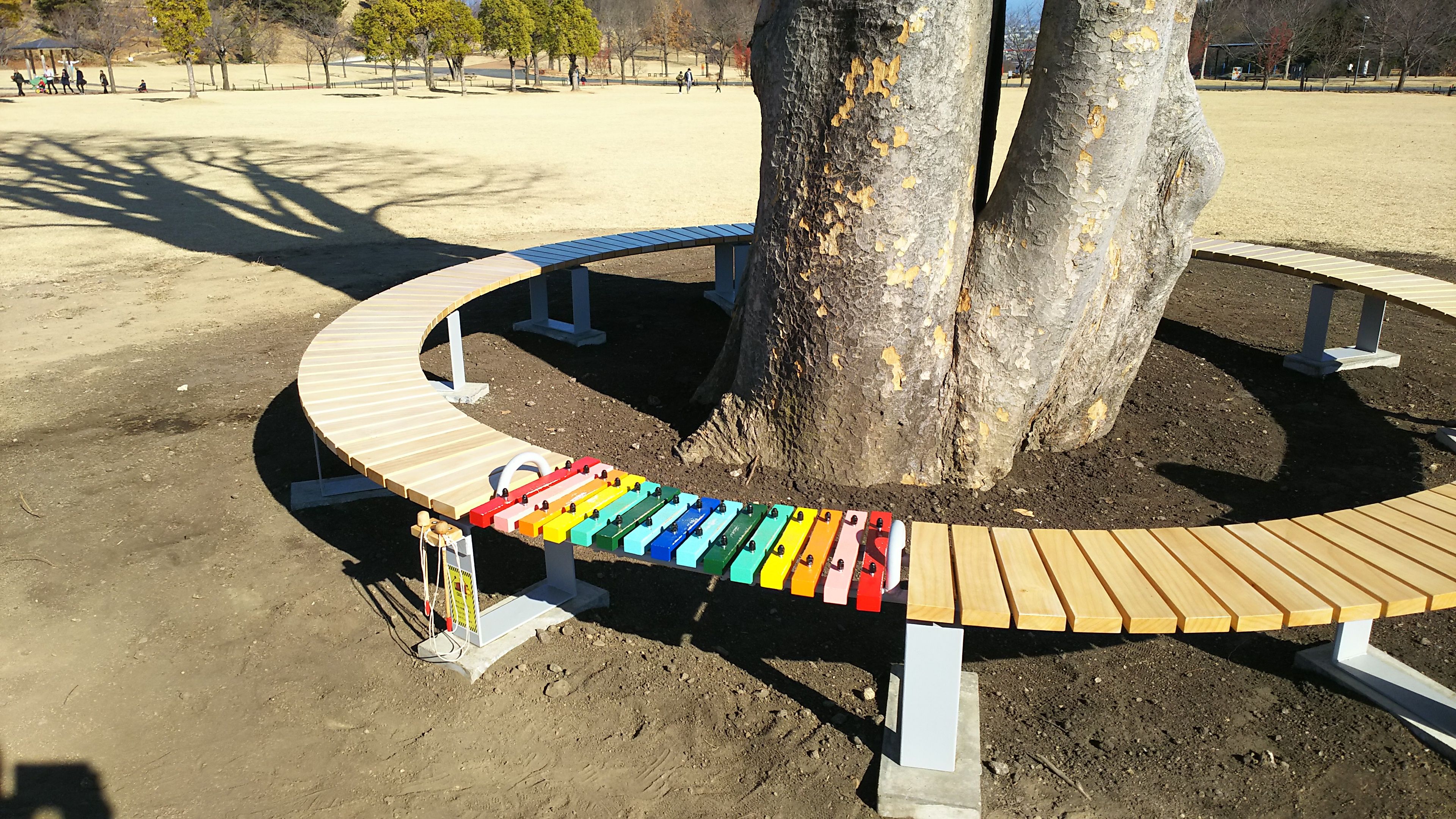 ベンチの一部が「木琴」になっていました