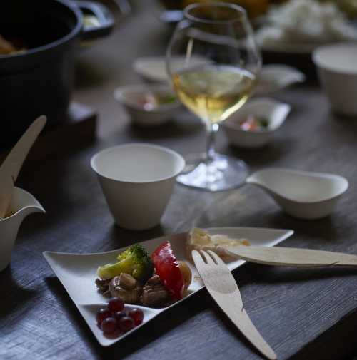 立食パーティでも片手で持ちやすく、重ねても省スペース。