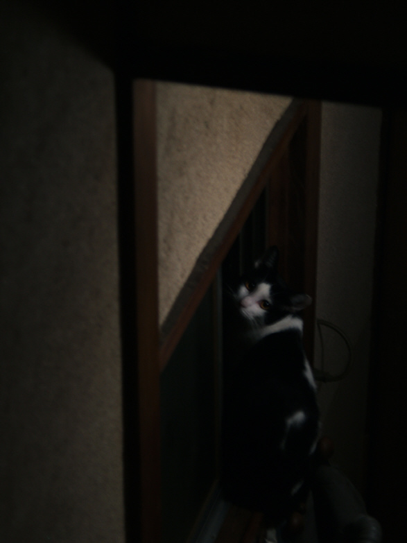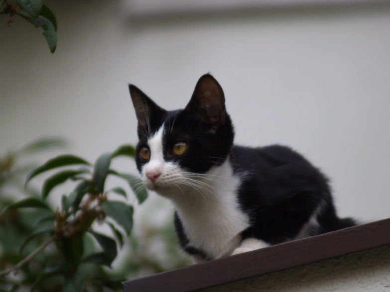 帰って来たら家の屋根にねこ。 ウーン、この子は知らないな~。 でも、家の子の柄だ・・・。 今、はたして何匹居るのだろうか?