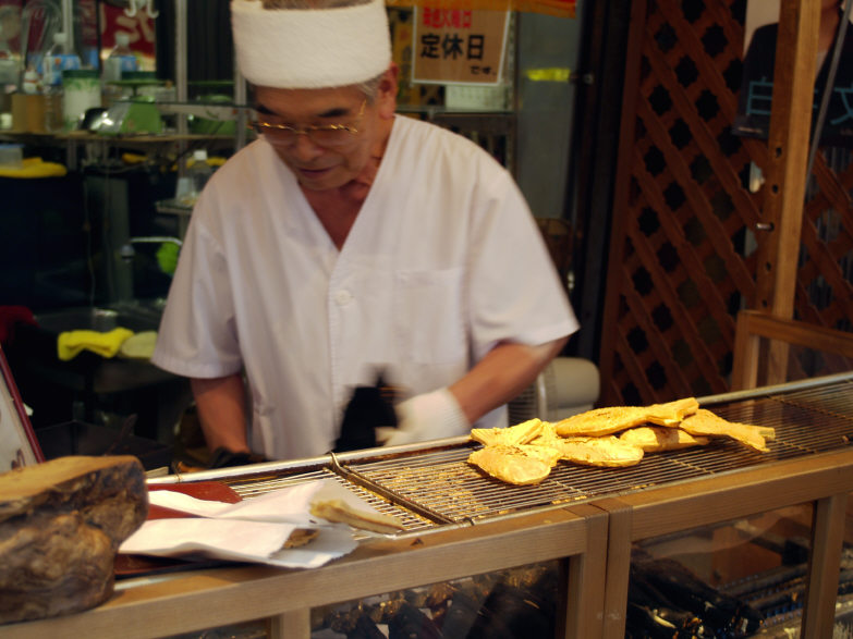 天然のたい焼き・・・。 ぱりぱりして美味しい。 優しいお上さん。 写真をと言うとにげてしまった^^。 代わりに焼師のご主人を。