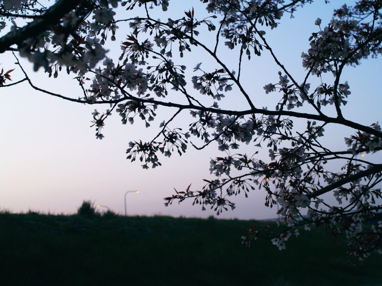 OLYMPUS E-500 TAMRON 13A 24-48mm f3.5-3.8 出かけの際、50mmF1.4を、持っていくかどうかで悩み、置いていく事にした。 一寸、、、かなり、、後悔である。 土手道に、張り出した枝を、昨日あたりに切り落としたようだ。 まさか、こんなところに、霜を纏った桜があるとは知る由もなかった。 暗いが動かせない、美しい姿に、これ以上の人間の勝手は、許されないと思った。 三脚は必需である、またも熟練者の方との差を感じた。