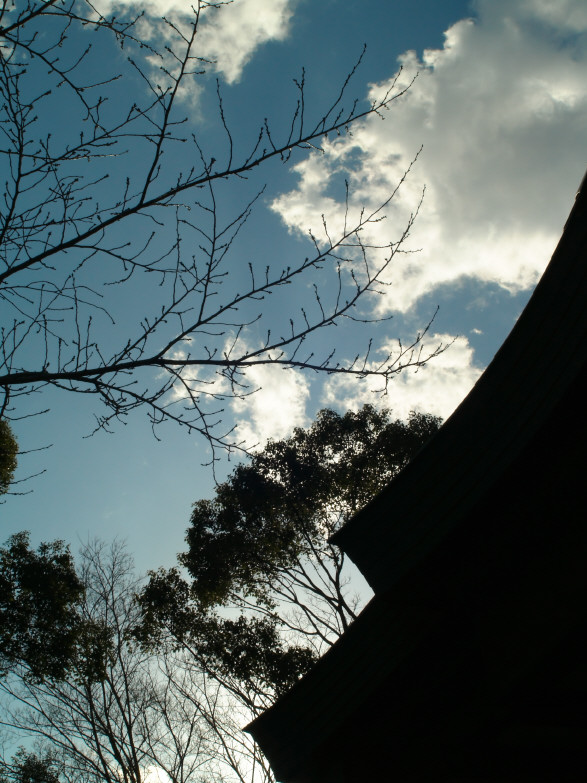 OLYMPUS E-500 TAMRON 13A 24-48mm f3.5-3.8 気分を変えて外で食事その傍の神社である。 タムロン13A、これはF32まで絞り込める。 F22で撮る。雲が動いてるように見えるが、体調の所為か?少しふらつく。 新ためて、自分には勿体無い良いレンズと嬉しく感じた。