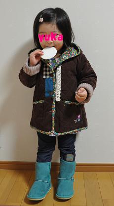 土曜日は、BREEZEの入ったSCに用事があったので、もちろんBREEZEにも立ち寄り、PetitJamの新作キルトジャケットが入荷してるか見て来ました。ありましたよ~、てんこ盛り!!早速試着して、購入してきました89cm、14kgで95cmを着ています。(着ていた服の上に羽織っただけの、適当コーデでゴメンなさい)90、95、100cmの試着をしましたが、ジャストは90cm。袖も折らないでいいし、ぴったり可愛く着られました。100cmは、コート風に着られてそれはそれで可愛かったのですが、袖を一折しても手が半分ぐらいしか出ず、娘がすごく気にしてるようだったので、95cmの購入となりました。95cmでも来年ジャストで着られそうです色はカタログの赤も可愛くて本当に悩みましたが、フードの色がこちらが好みだったので、茶にしました。でもやっぱり赤も可愛かったな~。あと、ニット帽のターコイズも購入しちゃいました。もう次から次へと欲しいものが出てきて困ってます^^;