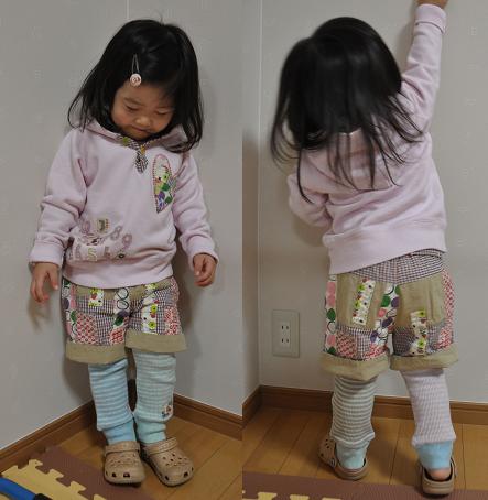 今さらなんですが、ようやくダウンベストを手に入れることができました!実は発売直後にベージュ100cmを購入していたのですが、ジャスト過ぎて来年着られなそうだったので、返品していたのです。どちらか送料無料のところで、ベージュかブラウンの110cmがポイント10倍になるのを待ってましたが、もう寒くなってきて待ってられないということで、りく&そらさんで、購入させていただきました。110cmが大きいのは分かっていましたが、やっぱり大きかったです!でもそれは想定の範囲内だったので、着画撮ってみましたよ~。まず下に着てる服はこれです。2歳1ヶ月 89cm 14kgCHIPTRIP フィギュアスケートハイネック パープル 100cmCHIPTRIP チェックパッチワークスカッツ ピンク 90cmなんか全体のバランスが悪い気がするのは気のせい?スカートが短すぎるのかしら。お腹が出てる?ずんどうだから?そして、ベスト(110cm)を羽織るとこんな感じで・・・。やっぱりベスト大きいですよね!スカートがほとんど見えなくなってしまいます。このスカートは短いから余計にそうなっちゃいますね。次は、主張パンツ(あやさえひなママさん命名?)と合わせて見ました~。2歳1ヶ月 89cm 14kgCHIPTRIP ファブリックパッチワークパンツ ブラウン 90cmCHIPTRIP ストレッチポンチスパッツ 08A/W 90cmパンツの方が、ベストが大きいのが目立ちづらいかな?やっぱりベストは、今年はパンツ、来年はスカートと合わせる作戦で行こうと思います^^