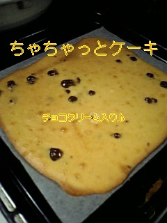 いやあ・・・カンタンで本当にちゃちゃっと出来ちゃって好評で・・・言うことないっス。今日は基本の材料に半端に残って干からびかけていたチョコクリーム(これ、懐かしいよね~)を混ぜてみました。もうちょっと違う感じに出来上がるかなあと思っていたんだけど(マーブル系になると思ったのだ)、干からびすぎていたか、生地に混ざらず、マーブル模様ではなくて↓こんな感じになりました。 もちろん子どもたちには大好評。昨日の残りの生クリームものせたりして楽しいデザートになりました♪まったく早く帰ってきたときぐらいせっせと掃除洗濯すればいいのにねえ・・・。