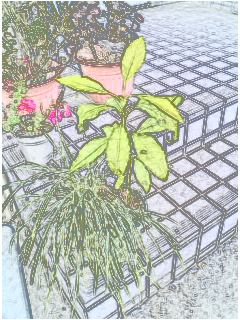 今使っているケータイは、買ってからもうだいぶ経つというのに、今頃になって「こんな機能があったとは!」と改めて驚いたことがあるので御報告。それは「色えんぴつモード」というもの。それで撮影した玄関前がコチラ。ホントに描いたみたい!と大感激(単純な性格だ~)。芽吹き始めたヒヤシンスや、つぼみが膨らんできたクリスマスローズ(ウチのは「バレンタイングリーン」という品種)も撮ろうかなあと試行錯誤しているとピーピーピーと警告音。バッテリー切れですわ。残念。それらはまた後日アップしたいと思います。庭の花ってちゃんと季節を覚えていてくれるんだなあ~。