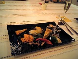 職場の女性陣でやっとスケジュールを合わせることができて、職場近くのお店でお食事会♪私自身はランチにしか来たことがなかったんだけど、他の同僚は何回か夜にも来たことがあるんだって。しかも来月予定されている上司の送別会もここのお店にすることにしたので、今晩は前哨戦!すでに異動してしまった専門職の女性も呼んで、総勢6名で。まず前菜。ん~?写真を横向きにするにはどうしたらいいんだ!?←その後できました!飲み物はスパークリングワインをチョイス。いろんな美味しいものが少しずつで夢いっぱいな前菜でした。真ん中あたりの里芋とか、手前のブロッコリにかかっていたソース、よくわかんなかったけど美味しかった~。そしてパスタ。これはホウボウ、菜の花、赤カブなどのパスタ。ちょっと塩辛かったけどいろんな味が発見できました。後ろにあるのは白ワイン。メインは鴨♪ソースはレンズ豆。赤いアンディーブが添えてありました。お皿は真ん中が透明ガラスになっていてキレイでした。茶色のお皿と赤いお皿があってテーブル上はより一層華やか。鴨もレンズ豆もなんだか滋味あふれる一品でした。もちろん完食。そしてお待ちかねのデザート。ああ・・・この画像も横向きにしたい!(できました・・・)左手は濃厚なチョコアイス。中央はプラムのタルト。左手はイチゴのコンポート。チョコアイスの濃厚なこと!プラムの味わいの深いこと!画像にはないけれどエスプレッソが互いに引き立てあいました。そうそう、これも画像にないんだけど、パンもこのお店の自家製で、今回は2種類出ました。最初がフォカッチャ・・・もちもちで美味しかった~。それから天然酵母のイチジクパン。イチジクって干してパンに入れるとどうしてこんなにかみしめたくなる味になるんでしょう。イチジクのパンがきっかけで、みんなで子どもの頃に食べたりしていた、庭の木の実の話などの話に花が咲きました。もちろんイチジク以外にも久しぶりに会えた女性との情報交換やら、今日の仕事のトピックス(書けないのが残念です!?)で大盛り上がり。帰りにお店自家製のメレンゲも購入。子どもたちへのおみやげにしました。ちなみにお会計は四千数百円でした。