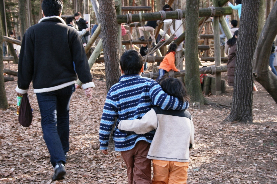 近くの公園へ行く。ここはアスレチックがわりと充実しているので、小学校高学年でも大喜びの場所。でも残念ながらゲンは友達との約束を優先(そりゃまあそうだ)。コーヤとシオリが勇んで出発!前回は買わなかったんだけど、売店で風車も買っちゃった。だってあまりに欲しがるシオリを見て、なんとコーヤが「パパ、僕はなんにもいらないからシオリに買ってあげてよ!」ですと。温情判決で購入決定。全く甘いなあ・・・。そんなわけで今日はラブラブなお二人でした。(前を歩く人は全然知らない人です。風景の一部と思ってください)しかし、この後、コーヤはアスレチックで手を滑らせてちょっとしたところから落下。怪我というほどの怪我はなく、多少すりむいた程度なんだけど、本人としては非常に不本意だったのと、かなり不思議だった様子。つまり「何で昨日お寿司食べたのに悪いことが起きるんだよぉ!」恵方寿司の効き目、さすがにここまではなかったようです。「お寿司食べたからこの程度で済んだんだよ、きっと」とフォローしたつもりだけど・・・通じたかな?