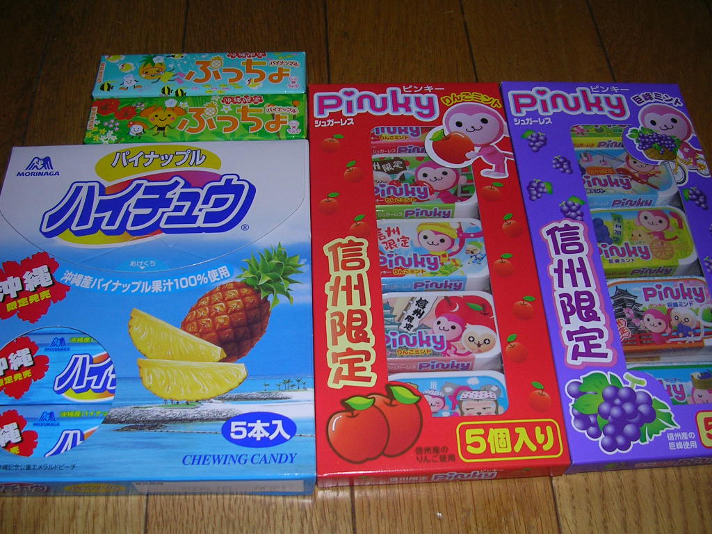 帰りの日がピーカン・・・・。気を取り直して、ホテルからしばらく行ったところにある見晴らしポイントに行く。国道の中で一番高度が高い、というところである。観光ポイントだと思うのだが、私たちが付いたときには1台の車がいただけで、その後バイクが1台来て写真を撮ってすぐに出てしまったので、しばらくは我が家だけでその場所を楽しんだ。「楽しんだ」というのは、こうである。子どもたち、絶景を前にして「やっほー!」そう、叫びはじめたのである。「やっほー!」「おかしいなあ、山彦がかえってこないよ?」いや、アンタ、無理でしょう。もっと谷間のところじゃないとダメでしょう?でも夫が言う。「こういうときは「ヤッ」だけの方がいいんだよ」というわけで、半信半疑ながら全員で「ヤッ!」。すると山彦が「ヤッ!」。驚いた~。当然子どもたち心ゆくまでやってました。シーズンオフだからこそ?でもいくらシーズンオフだといってもまたまた寄った軽井沢アウトレットモールで購入したのがこれとは・・・。ちなみに、ピンキーは宿の売店で購入したものなんですが(だから信州限定!)、そして子どもたちが欲しい欲しいと軽井沢で買ったのが↓これ、その後家に遊びに来た子に振る舞って「おまえおきなわいったの~!?」って驚かれていました。そりゃそうだよなあ。