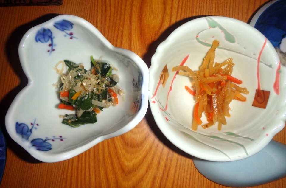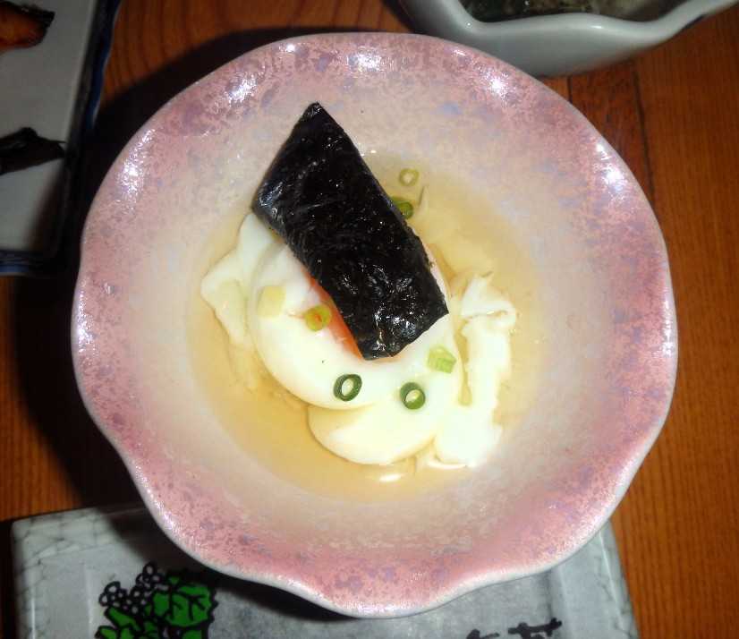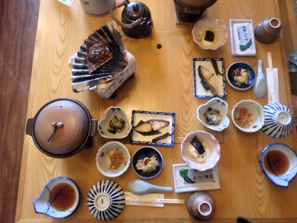 我が家の食卓。焼き魚温泉玉子お浸しと、切干大根。陶板の中は、自家製豆腐。ほうば味噌焼き。 いざ、上高地散策へ。