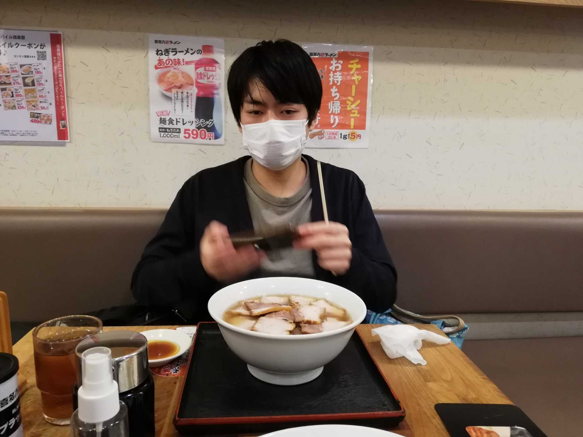 目の前で食事をするのも気が引けるので息子と晩ごはん食べに行ってきました。