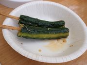 バーベキューに、きゅうりの漬けたやつを箸休めに持っていきました。きゅうりを半分に切って、ヘタをとって、皮を適当に剥いて、割り箸に刺して、つけ汁(醤油、砂糖、ごま油、鶏ガラスープ粉末、ラー油、唐辛子、を適当な分量まぜたもの)に漬けて数時間放置したものです。さっぱりしているけど、あっさりしすぎないという、バーベキューの肉に負けないインパクトのある味になっておいしかったです。当日の朝さっと仕込んで、火おこしをして、肉を食べて、一段落ついたころが食べ頃になってちょうど良い箸休めになります。お漬物!!袋を破ってそのまま食べられます!カリポリおいしく、手軽に野菜を摂取!子供会の夏祭り、アウトドアなどで好評です!夏の乾いた身体に最適な水分・塩分補給にして下さい。【お漬物】きゅうり漬 1本 【夏の浅漬 必須アイテム】【国産原料】【子供のおやつ】スーパーSALE! 02P30May15別にバーベキュー用というわけではないですが、割り箸に刺して手で持って食えるようにしておくと、バーベキューの雰囲をより楽しめる(ような気がする)から不思議。ではごきげんよう。