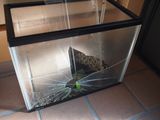 うちで飼っている金魚の水槽が割れちゃいました。玄関に10Lタイプのもの(いわゆるSサイズ)を置いてありました。割れた時に数リットルの水が噴き出しただけだったのですが、それでも一面水浸しになりました。金魚も大きくなって来たので、もう一回り大きいものを買おうかと思っていたのでちょうど良い機会でした。今度は、23Lタイプのもの(Lサイズ)にしてみました。金魚のお部屋 BK-L☆送料無料☆金魚のお部屋 BK-L(1コ入)【送料無料】水槽のサイズは一回り大きくなりました。寸法的には置けるサイズなのですが、実際置いてみるとデカいねぇ~家電店で見たテレビをうちに置いてみたらデカくてびっくりしたパターンですね。Mサイズにしておけばよかった。サイズはともかく、重量が・・・・20kg位あるので、持ち上げるのが一苦労。これを掃除する度毎回持ち上げるのか、と思うと気が重くなる。ところで、うちの水槽はすぐ汚れちゃうんですけど、ペットショップなどの水槽は綺麗ですよね。一体何が違うんだろうか。こんなん入れてみようかな。水槽の水換え不要1年間!金魚,淡水魚,熱帯魚の水槽の水作り、飼育、立ち上げ楽々!24時間後にバクテリアが出現白濁を分解して透明な水に![送料無料] お得用3本セット【水質浄化活性石バクチャー3本セット+おまけ付(淡水用)】bakuture/アクアリウム/金魚/熱帯魚/淡水魚/観賞魚/病気予防/アオコ/藻/水質改善/ファインドプラスではごきげんよう。