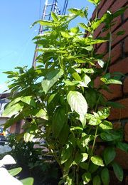 ウチの花壇にスイートバジルを植えてあるのですが、ちょっと放置しておいたら、ワサワサと繁っていました。下から撮ると木にしか見えない。で、せっせとバジル食ってます。チキンソテーにしたり、なすと炒めたり、もちろんマルゲーリタピザやパスタも作りました。朝食に出すような簡単なピザトーストでも、バジルが乗るだけでなんかゴージャス♪ちょっと小洒落た食材が一つあるだけで、もこみちな気分になりますね。 MOCO’S キッチン LOVE GOHAN (ぴあMOOK)[本/雑誌] / 速水もこみち/著ではごきげんよう。