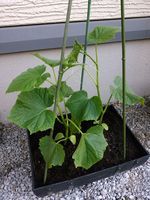 庭にプランターを置いて、きゅうりの苗を植えて、きゅうりを育て始めました。理由はとくになく、「なんとなくやってみたくなった」からです。とりあえずホームセンターで、苗2本、プランター1個と、プランターの土を1袋をかってきました。植えた直後きゅうりのようにつるが伸びていく植物は、何か支えがいるとのことで、家にあった棒を適当に挿しておきました。耐暑性にすぐれる地這いキュウリの短形多収種!実生きゅうり苗・濃緑ときわ地這い胡瓜3日後おおぉ、大きくなってる! 伸びるの早いねー一週間後 花が咲きました。伸びるのが早すぎて、適当にさした棒では役に立たなくなってきました。そこで長い棒とネットがセットになったものを買ってきました。つる性のウリ・マメ・イモ類・きゅうり・エンドウ等の つる性植物に。角目で張りやすく、くり返し使える長持ちタイプです。日本マタイ つる野菜栽培ネット 12cm角目 2×10m グリーン【朝顔/緑のカーテン/園芸ネット/4989156008893】【RCP】【05P03Dec16】2週間後花の根元部分には、実が出来てきました。はやくも3週間が経過。実が大きくなってきました。もう食えそうですが、もうちょっと我慢。時折、水をあげるのを忘れると、葉っぱがしなーっつとなります。水をあげると、すぐにシャキッとなります。きゅうりを育てたのなんて、小学校の時以来。一つ一つが軽い感動で、おもしろいですね。そしてちょうど4週間後、初収穫。大きくなりました。見た目は普通のきゅうりと同じですが、切ってみると、採りたてはものすごくみずみずしく、柔らかいです。スティック状に切って食べましたが、みずみずしくて、曲げても折れないで曲がっちゃう。でも一晩経つと折れちゃいました。採りたてってすごい。まぁはっきり言って、買ってきたほうが全然安上がりです。これは、育っていくプロセスを楽しむ高尚な趣味ですな。朝採りしたものを発送!一味違います!寒暖差の中で育った!長野産 きゅうり 1本(12月から4月までは休み)ではごきげんよう。