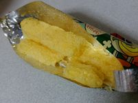 どこかのスーパーで見つけた、唐辛子のお菓子。【アサヒフード】140円 燃えよ 唐辛子14g(8袋入)唐辛子に衣をつけて揚げたスナックです。これが見事に唐辛子の味がして、旨いですね~食べ出したら止まらない。あっという間に一袋無くちゃっちゃいました。辛さは大したこと無いんですが、特筆すべきは衣の旨さ。これ作ったの誰? 紫綬褒章あげても良いと思う。で、また欲しいなと思うんですが、どこで買ったか思い出せない。その辺のスーパーには売ってないみたい。調べてみると、なんと「大炎上唐辛子」なるお菓子もあるようで…どこに売ってるんだろう?ではごきげんよう。