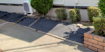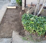 自宅の基礎は道路より数十センチ高く、法面があります。以前は芝生が張ってあったのですが、野良猫がフンをするようになり、不衛生極まりない。なので芝生を剥がし、猫が入りにくいとされる防草シートを敷きました。芝刈りも大変だったし。それが2014年頃の話。7年経って、耐用年数を過ぎた防草シートはボロボロになりました。外から丸見えの目立つ場所だし、土砂は流れ出してくるし、みっともないのでなんとかしようと思いつつ、思うだけの日々。見栄え良く業者にやってもらいたいが、いかんせん予算がないので自分でやるしかない。玄関アプローチがレンガなので、その延長で法面もレンガ積みにしよう、というのは早くから決めていたのですが、問題をややこしくしてたのは、「数十センチの高さのレンガ積みだと、クルマをぶつけそうでヤダ」という妻の要求。これを回避するアイデアがなくて長年悩んでいたわけです。それに業者にやってもらう費用の数分の1に抑えないと意味がありませんしね。悩みに悩んだ末、法面を複数段のレンガ積みにすることにしました。低い段差を設けておけば、バンパーをぶつける前にタイヤが乗り上げるだろう。そこで気づくよね?ということで。合成写真なんかも作ってみたりしてあと、埋め込みの散水栓があるんですが、非常に使いづらくて困っていました。雑草だらけの散水栓に腰をかがめて手を突っ込んで蛇口を開けるのは、もうイヤですどうせやるなら立水栓にしてしまえと。こんな↓感じがイメージ。立水栓 水栓柱 立水栓セット送料無料【石積調 立水栓&シンクセット(P)】庭 水道 外水道 水受け ガーデンパンさて、DIYでやると言っても、私はレンガ積みの経験はありません。でもこのご時世、ブログやら動画やらSNSやら情報源はいくらでもあります。ちゃんとやればそこそこキレイに仕上がりそうです。私が主に頼っていたのはこの教科書。決定版 手作りエクステリア百科【電子書籍】重要なのは多分、きちんと水平・垂直・平行を取ることでしょう。レンガがぴったりまっすぐ並んでいたら、多少モルタルがヘンでもごまかせます。なんとなくデザインの方向性が固まってきつつあった7月の連休初日、伸び放題の雑草に占拠されている外構の無様さに耐えられず、衝動的に工事を始めてしまいました。細かい設計はやってません。いきあたりばったりです。「まあ、夏休み中ぐらいには終わるでしょ」 とか思っていたんですが・・・・よもやよもやの長期戦に。衝動的に始めたので、施工直前の写真がありません。上の写真はいずれも一年ぐらい前の(これでもまだキレイだった)状態です。このあと、わずか一年で急速に荒れました。編み込みの防草シートは、劣化し始めるとすごい勢いでほつれていきます。とりあえず雑草をカットし、土をどけて整地しました。衝動的に始めたので、すでに夕方です(笑)始まってしまったものは仕方がない。さてどうなることやら。明日に続く。