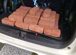 建物横の法面をレンガ積みにします。DIYで。初めてのレンガ積みですが、時間がかかってもいいから丁寧に、ソコソコの仕上げを目指します。直線セクションラストスパートです。週末の早朝、毎週のようにレンガを買いに行っていたので、きっと店員さんに顔覚えられたことでしょう。そして思われていたことでしょう。 また来たよ、何個買うんだ?って。それももう終わりです。レンガって、なぜか通販で買うと高いんですよね。リアル店舗のほうが全然安い。ポイント変倍★ 500円クーポン付 【14枚/0.28平米分】レンガ NITTOSEKKO 赤 レッド 200×100×40mm 赤煉瓦 赤レンガ 新品 高品質/低価格 焼きレンガ 耐火温度1300℃ 耐火レンガ 普通レンガ【おしゃれ軍手】直線セクションの残りを積んでいきます。どんどん伸びていって、まあなんとか、形になりました。この頃になるとレンガ積みも慣れてきて、ちょっとづつ早くなりました。なんと最後、モルタルが足りなくなって、3個だけ積めませんでした。慌てて買いに行きましたよ。【家庭化学工業】家庭化学工業 インスタントモルタル 下地用 グレー 3kgそんなこんなで、とりあえずレンガ部分は完成。いいのか?これで。この段差なら、バンパーを当てる前にタイヤが乗り上げて気づくでしょう。ここまでで一ヶ月です(のべ10日ぐらい)。途中、モデルナワクチン(2回目)副反応でダウンとか、雨で工事できない日とかも有りましたけどね。左端には埋め込み式の散水栓があります。散水栓は雑草が生い茂って使いづらいので、周囲をモルタルで固めて、立水栓にしようと考えています。でも植栽があるので全部をモルタルにできません。ということでレンガで区切りを作リました。こんなデザインでいいんだろうか・・・?後日、ここには防犯ジャリ(白)を撒きました。そんな予定はなかったけど、パッケージ破損で安売りされていたのでつい。防犯防草ジャリ 20L (P積付数;50) ブラウンミックス【アイリスオーヤマ】(防犯ジャリ) 新生活さて、レンガ(垂直面)は終わりました。次は上面(水平面)の処理です。土になっている部分は極力モルタルで埋め、雑草が生えないようにしてメンテナンスフリー化を目指します。かつ、野良猫がフンをできないように砂利引きにします。しかし中央付近にはカイヅカが有り、ここは埋めることはできません。どう処理しようか悩んだ末、小ぶりのレンガで円形に囲うことにしました。まあ私のデザインセンスではこれで精一杯です。最初、型紙を作って正確に円形に並べたのですが、真円に見えないのです。すごく縦長の楕円に見える。多分、横方向に建物とレンガ列があるために目の錯覚を起こしているのだと思います。なので斜めから見て真円に見えるように、最終的には自分の目で調整しました。横が20%ぐらい長い楕円にすると、不思議と真円に見えます。人間の目って不思議。明日に続く。