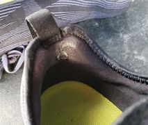 半年前から使いだしたミズノのwaveaero19、およそ1,500kmの走行距離を経て、かかと部分が破れてきました。私の走り方や体格もあるでしょうけど、やっぱりよく言われいるようにマラソンシューズの寿命って1,000kmぐらいですね。ソールも新品のようなグリップはなく、滑ります。道路には落ち葉が増えてきたので怖いです。ケガしてもアホらしいので、マラソン大会にむけて新調することにしました。同じものを連続で。 左が新品、右が150okm走行後です。やっぱりちょっとヘタってる感じあるね。軽くて好きなんですよね。前の靴は、履けないわけではないので、普段の練習用にすることにします。ミズノ ランニングシューズ ウェーブエアロ 19 ワイド ブラック×ブラック×ホワイト J1GA213646 メンズ 2021SS あす楽 同梱不可 RFCL厚底のシューズが流行りですが、ナイキ ランニングシューズ メンズ エア ズーム ペガサス 38 4E エクストラワイド CZ1815-002 NIKEウェーブエアロが生産中止になったら考えよう。ウェーブエアロ20、出るかなぁ・・・?人気ないんですかね?ウェーブエアロシリーズ。お店でもあんまり見かけないし、宣伝も積極的でもなさそうだし。流行りのフォルムじゃないけど、それがいいっていう人もいるんだけどね・・・ではごきげんよう。