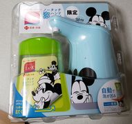 ミッキー柄のミューズのハンドソープディスペンサのセットが、ケーズデンキで1,500円ぐらいでした。非接触式はやっぱり清潔なので買ってみました。お店ではコンパクトに感じたものの、自宅の洗面台に置いてみると意外とデカい。吐出は泡になっていて、ピンポン玉ぐらいのサイズです。ウィンウィンと動作音が安っぽいですが、家庭用の乾電池式ならこんなもんでしょう。石鹸液に色がついています。これは色がなくなるまで泡立てるときっちりと洗浄できているということらしいです。概ね満足ですが、気になる点を一つ。オンオフスイッチは底面についていますが、洗面台を拭いた時などに不意にセンサーが反応してしまうので、できればもっと操作しやすい場所につけて欲しかった。洗面台拭く → 泡出る → 手洗う → 洗面台濡れる → 洗面台拭く → 泡出る → 手洗う → 洗面台濡れる → ・・・以下、無限ループ【クーポン配布中】 ミューズノータッチディズニーハンドソープ 本体セット ミッキー レモンライムの香りこんなデザインのものもあるんですね。ケーズデンキにはなかったけど。【限定モデル】ミューズ ノータッチ泡ハンドソープ ミッキー ディスペンサー 本体+詰替 2種の色のボトル(グレープフルーツ・せっけん) 保湿成分配合 殺菌 消毒 250ml×3 ハンドソープ 防水 薬用せっけん 手洗い 石けん 石鹸 ノータッチではごきげんよう。