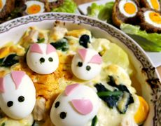 イースターだな・・・と思って、卵料理作りました。そういえば去年は作らなかったかも。要するに昨日のエッグタイマーはこのために購入したわけです。ウサギを模したグラタン。ウサギですよ。ネズミじゃないよ。もとネタはこれですイースターポテトグラタン 味の素https://park.ajinomoto.co.jp/recipe/card/800357/目を赤くすればよかったのかな…もとはといえば、子供たちからのリクエストで始めたイースターのタマゴ料理。今年で5年目ぐらいですね。頑張って作って食卓に出したら、「あれ?今日イースターだっけ?」忘れとるやないかい!春のイースターは卵が問題 (コージーブックス 大統領の料理人 3) [ ジュリー・ハイジー ]ではごきげんよう。