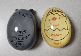 ダイソーのネコのエッグタイマー買いました。かわいいだけじゃなく、これ、見やすいんです。左のほうね。右のヤツは今まで使ってたやつですが、加熱しても色が変わらなくなってしまった。こういうのも劣化するんだね・・・お疲れ様でした。常温では黒っぽいネコちゃんですが、加熱すると白になります。茹で具合のコントラストがハッキリしていてい見やすい。このネコシリーズ、結構なバリエーションがありますが、このネコに名前はあるのだろうか?さっと調べた限りでは特にないみたいなので、なんかいい名前つけてあげて~かっこいいけど ターミネーターかと卵/アップルキッチンタイマーかわいいマニュアル、キッチンクッキングベーキングスポーツキッズ用の大音量アラーム付きステンレススチールメタルメカニカルビジュアルカウントダウンクッキングタイマー(卵タイマー) L&B Olivia Egg/Apple Kitchen Timer Cute Manuaではごきげんよう。