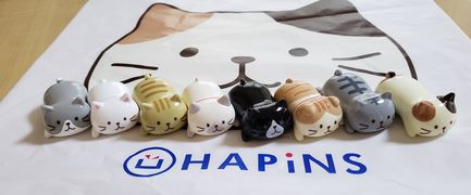 ついに全員集合しました。ふくふくにゃんこの箸置き。おしりがカワイイ。単に色違いに見えるかもしれませんが、よく見ると、すでに発売されていたオス5匹と比べて、新たに追加されたメス3匹はちょっと小さいんですよね。しかもスコアは耳がちゃんと丸くなってる(スコティッシュフォールドなので)。型も新たに作ったんだ・・・なにげにしっかりと作ってあって驚き。次回作は新参3匹のストーリーが読みたいですね。ふくふくにゃんこ にゃんこたちのしあわせな島のものがたり [ ハピンズ ]ではごきげんよう。
