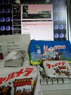 寝すぎて腰が…いたい…。いででででで。Σ(>д<) で、遅い朝ごはんのあといつまでもコーヒーのんでまた~りとしていたら…「ぴんぽーん ( ^-^)σ[]| ヽ(^^ゞ。。。。はーい、ただいま! 」休日も一生懸命働いてる佐川くんでした。ん?差出人は、とある会社。品名…サンプル…とな???なんだっけえー。なんかサンプル頼んだっけー?遂にボケたかっ!!!あ。ちっこくオトモダチの名前が♪りりちゃ~ん!!そう。あのオトナのかほり満載のあのサイトを運営されているあの方から~♪中身はこれ^^。わあ~お。こないだ私が欲しいといってたクッピーシリーズ♪これは、使えそうなポーチだ!女の子の必需品♪うれしいわ、うれしいなっ!!それに、チャルメラのトートにお財布だ!!大盤振る舞いだ~☆彡お誕生日でもないのに~。ありがと。りりちゃん!!ゴールデンウィークの思いがけないプレゼント♪うれしかったので早速アーーーップ!!!さ。お化粧道具をさっそく詰め替えましょう♪ほんとにありがとさんきゅっ♪v(*'-^*)^☆