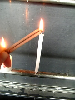 今日はお盆の送りの日でしたね。ウチも先ほど、港までお見送りに行ってきました。水辺から帰っていくのだね。お父さん…また来年。にこにこ笑ってみていてね、と手を合わせました。主人の父とても穏やかなやさしい小さいおじさんでした。ちびまるこちゃんのおじいちゃんみたいな。^^手を合わせたといえば…今日は終戦の日でしたね。私の命も戦火の中を逃げ惑いながらも生き延びてくれた祖母と母のおかげで今日まで繋がれています。誰かに祈りたくて平和であることの幸せが続くように…戦争で散ってしまった沢山の命がどうぞ安らかに眠られますように…でもわたしは信じる対象を特にはもちません。ご先祖様は、別だけど…。何かに祈りを捧げたいとき夜ならば月や星があります。今日はお昼時にお祈りしたくなりました。なのでお祈りするのは、輝くものか、おっきなものに。会社の昼休み急いでうどんを食べて隣の寺へGO!(桜の寺ね^^)εεεεε┏( ・_・)┛ドスンドスン!!!ささ。階段を登って50円でろうそくとお線香を買います。おひさしぶりです。福岡大仏。大仏さんです。デカイですね。ビル3階分くらいあります。日本最大の木彫のようです。穏やかなお顔を拝んで祈りを捧げて何だかすがすがしい気持ちになれました。特に何を信じてるからってわけじゃなく誰かに謝りたくなったり何かを祈りたくなると、ここに来ます。虫がいいかな?いいんだい!!(・-・*)ヌフフ♪