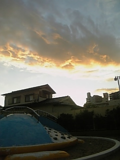 図らずも、四時に目が覚めてしまいました。皆は気持ちよさそうに寝ているので邪魔しないように私もまた寝よう…と、ゴロゴロしてみたけど寝られなくなっちゃった。ベランダに出て今朝咲くであろう蕾を愛でたりなんやかやこちゃこちゃとやってるうちにセミの声が聞こえだして夜が明け始めました。。。いつぞや、そうしたみたいにオヤジサンダルにめがねもかけず、公園で写真撮りました。街中の朝焼けは、あんまりきれいじゃないね…。ひとりでつまらなすぎるので眠ってる旦那の足に○虫のくすりを、綿棒で塗ってあげたりしてるうちに起こしてしまいました(^-^;…ごめんよぅ。。。