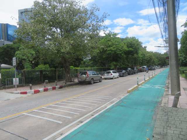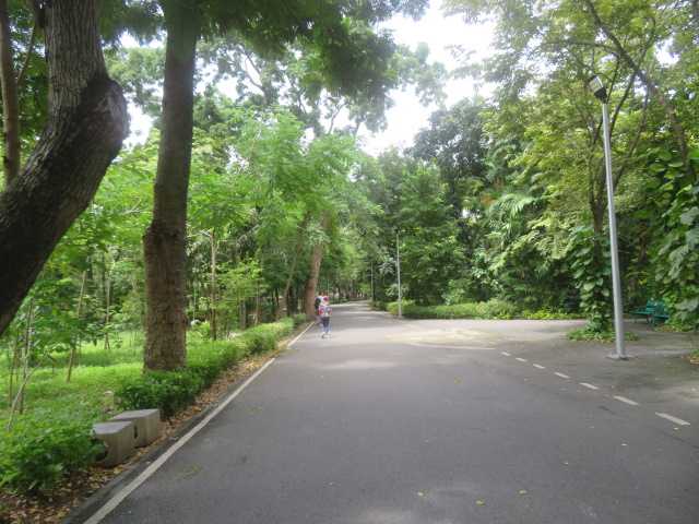 チャトチャック公園から道路を一本挟んだ向かいがワチャラベンチャター公園。ワチャラベンチャタート公園に行ってみます。入り口がわからずに探しました。しばらく歩くと駐輪場が見えてきたのであそこでしょう。公園の案内板です。ワチャラベンチャタート公園です。こちらは公園のジムのようです。公園内は起伏に富んだ地形です。自転車専用の道路もあります。木々が生い茂り日陰があって涼しくていいですね。この後あるところに向かって歩いています。グーグルマップで見つけたんです。この公園の隣には先月亡くなられたシリキット王妃公園があるんです。結構長い距離を歩きましたが日陰を歩いていたのであまり暑くありませんでした。あれが今日の目的地です。ここに蝶の庭と昆虫館があるんです。バナナの木の後ろにあるようです。ここです。今回の目的地です。砲丸の木があります。その後ろの建物が蝶の庭と昆虫館。蝶の庭と昆虫館に入ってみます。