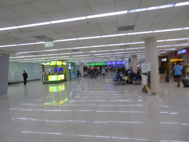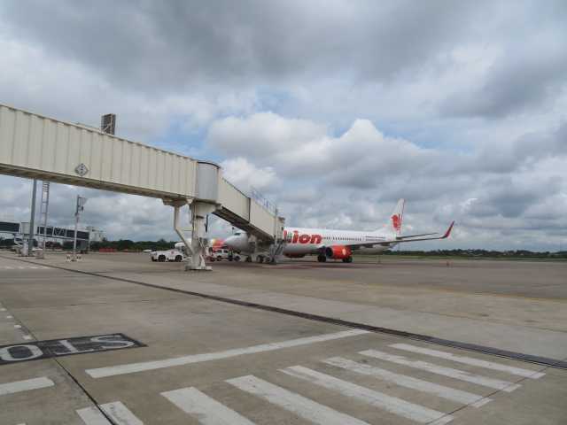 翌朝部屋を出てまずはチェックアウトのためフロントに向かいます。チェックインを済ませてエスカレーターで3階へ。連絡通路を通って空港ターミナルへ向かいます。空港ターミナルに到着しました。チェックインカウンターが並んでいます。ウエブチェックインを済ませてあるのでここは通過します。そして出国審査場へ向かいます。出国審査を済ませて搭乗ゲートへ。シェムリアップ行きは25番ゲートなのでここを右です。21から26番ゲートはこちら。再び出発案内板でゲートを確認。10:10発FD610シェムリアップ行25番ゲート。ゲートへ向かいます。25番ゲートですから一番突き当りのゲートです。お掃除ロボットが今日もお仕事中。25番ゲート。搭乗機が到着したようです。搭乗機は出発準備です。出発カウンターでも出発の準備中。一番端っこにある25番ゲート。間もなく搭乗開始です。ライオンエア機が滑走路へ向かいます。エアアジア機のレスターシティ塗装機が下りてきました。この白い塗装機はビジネスジェット?搭乗開始の案内です。レスターシティ塗装機が駐機スポットへ向かいます。ライオンエア機が滑走開始。加速していきます。そして離陸していきました。搭乗が始まりました。機内へ向かいます。