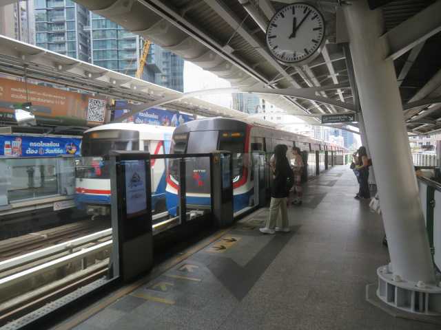 搭乗機は54番スポットに入ります。搭乗機は停止して降機です。到着ロビーへ向かいます。以前事故があった動く歩道も現在は稼働しています。到着ロビーのバゲージクレーム。荷物はないのでそのまま出ます。到着ロビーを出て右側の国際線ターミナルを目指して。やって来たのは国際線ターミナルを出ると新設されたバス乗り場。こちらからスワンナプーム国際空港へ行くシャトルバスも運行されています。こちらがエアポートバスの乗り場。A1からA4までの4方向。北バスターミナルへ行くA1がやってきました。バスが出発しました。モーチットで下りてちょっとモーチット周辺を探検しました。車でBTSやMRTの駅まで来て専用駐車場に車を止めて職場へ向かうという人たちのための駐車場。再びモーチット駅まで戻ってきました。BTSモーチット駅。列車が来たので乗り込みます。ここから向かうは12駅先のプロンポン。そして到着して下車。プロンポン駅です。列車を見送りここからお目当ての場所へ。やって来たのはこちらです。フジスーパー1号店です。