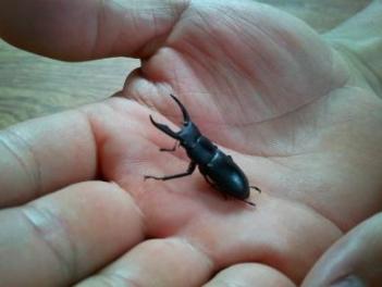 セラピーが終わって お客様をお見送りするために玄関に出てふと黒いものを発見!小さくてでもはさみ?みたいなものがついている・・・「あ~。くわがた~!! しかも小っちゃ!」と思わず口から出た。お客様をお見送りして 家に入って大声で「くわがた~!!!」と叫ぶと 相方が走って出てきた。相方も子供時代ぶりなんじゃないかな? 手に乗せるなんて。ホント小さいくわがたでした。こんな海に近い場所にもいるんだ。 というか秋だから寒くない??少し弱っているみたいで 我が家でそのまま飼うのか?外に放すかを検討したけどやっぱり外で自由にしてもらうことに決定。外敵に狙われにくい場所に置いてさよならしました。少し経ってみてみると いなくなっていたくわがた。ちゃんと生きていけたらいいな。