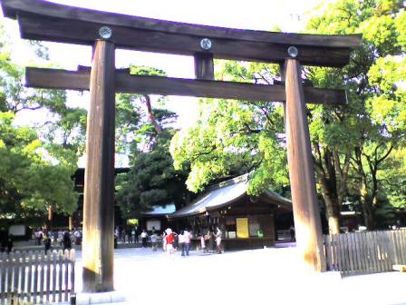 今日は外出先で時間があったので、明治神宮へお参りにいってきました。なんだか神妙な気分になれました。携帯のカメラで写真をとったので、画像はいまいちなのですが、UPしますね。鳥居をくぐり、参道を通って、お参りしました。手前が御神木、奥が本殿の入り口です。