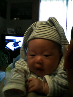 ↑母ちゃんが作った帽子失敗作。「どう見てもツタンカーメンにしか見えない」と大好評!(ヤケ)