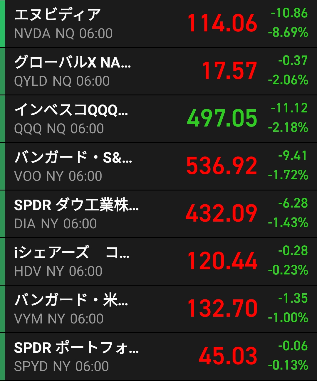 高配当株ETFはそこまでダメージ受けてないのでひと安心。