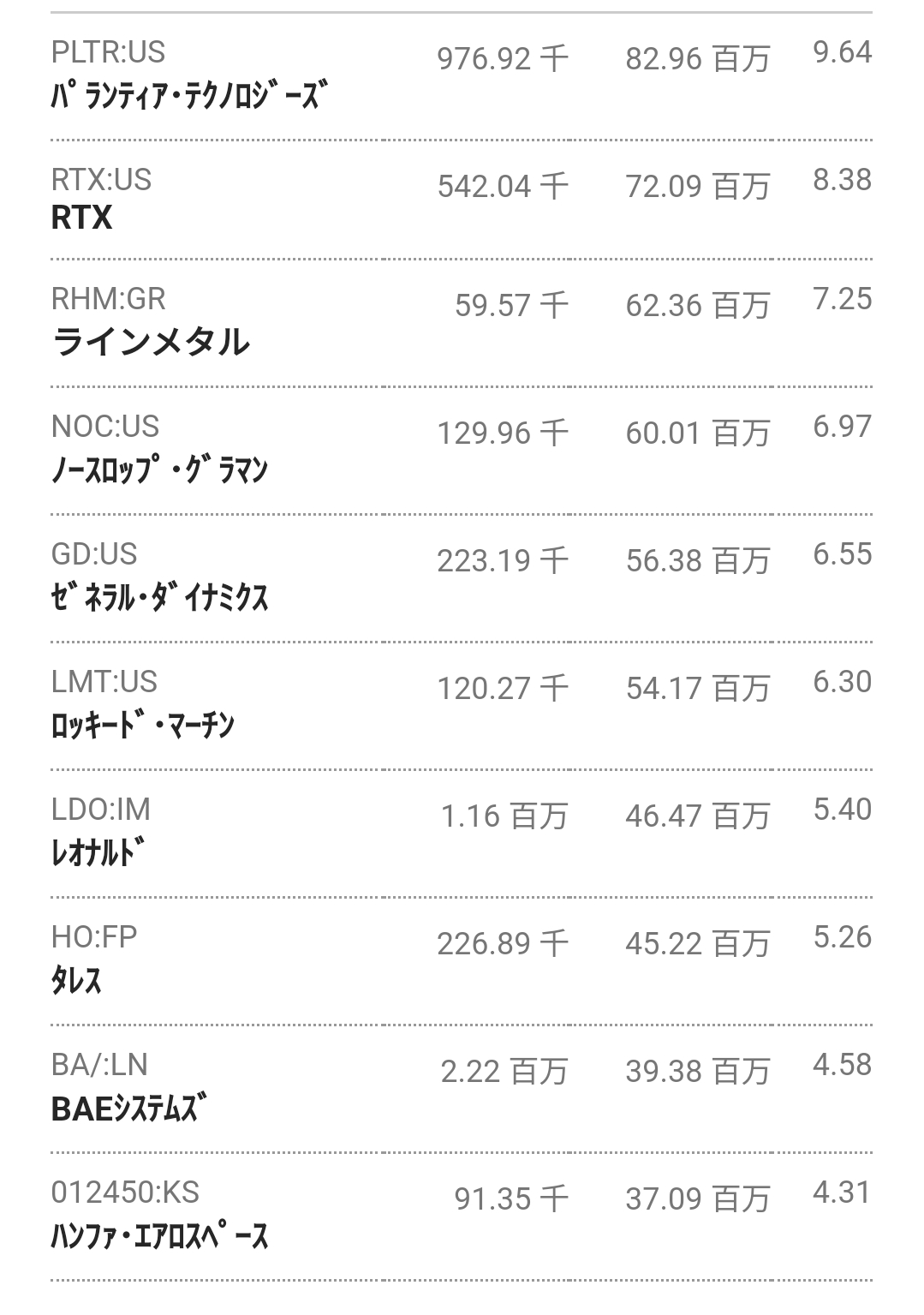 兵器を作る会社に投資してるわけなのでちょっと複雑な心境です。