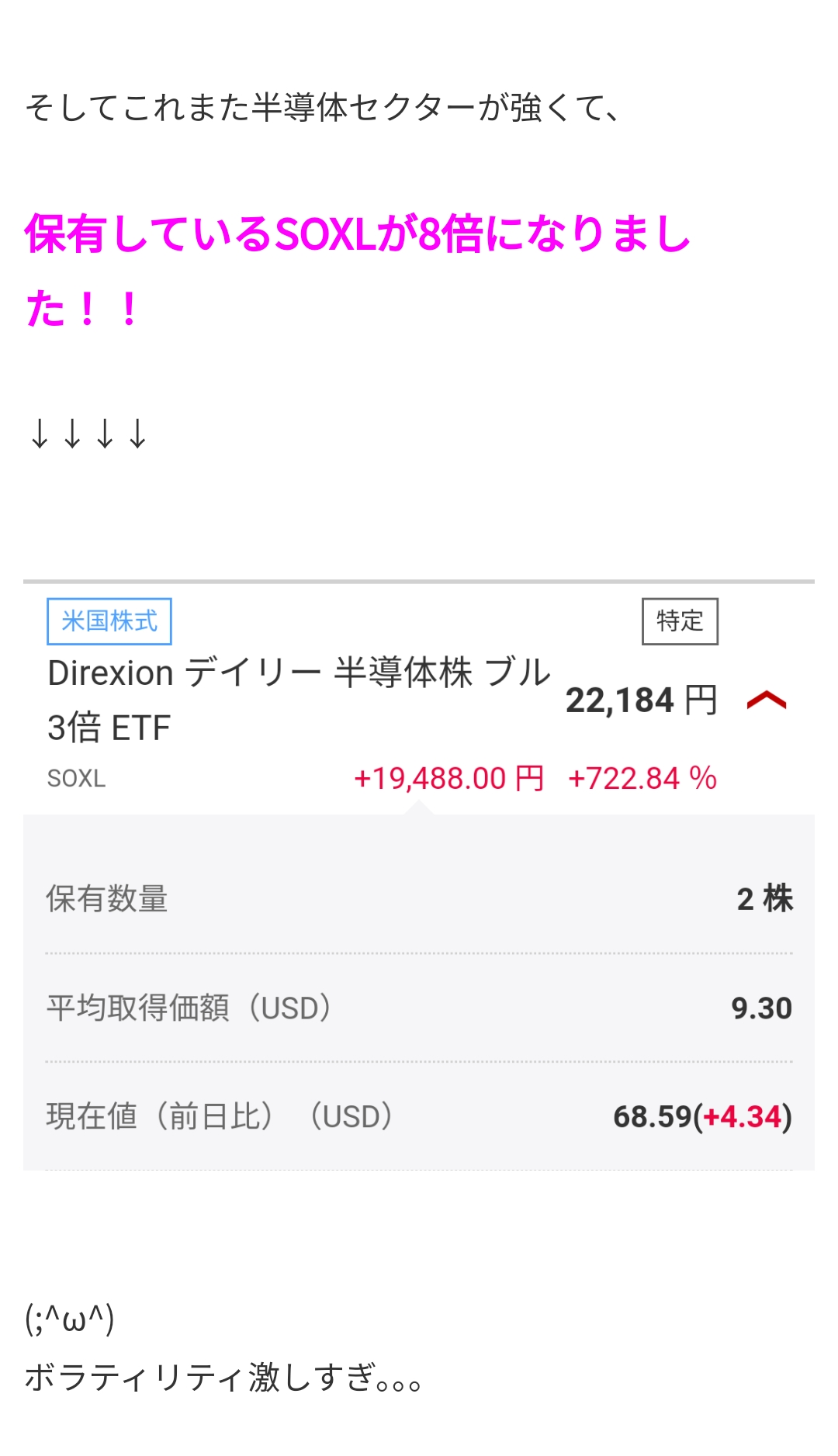 あの日、SOXLは光り輝いておりました!!
