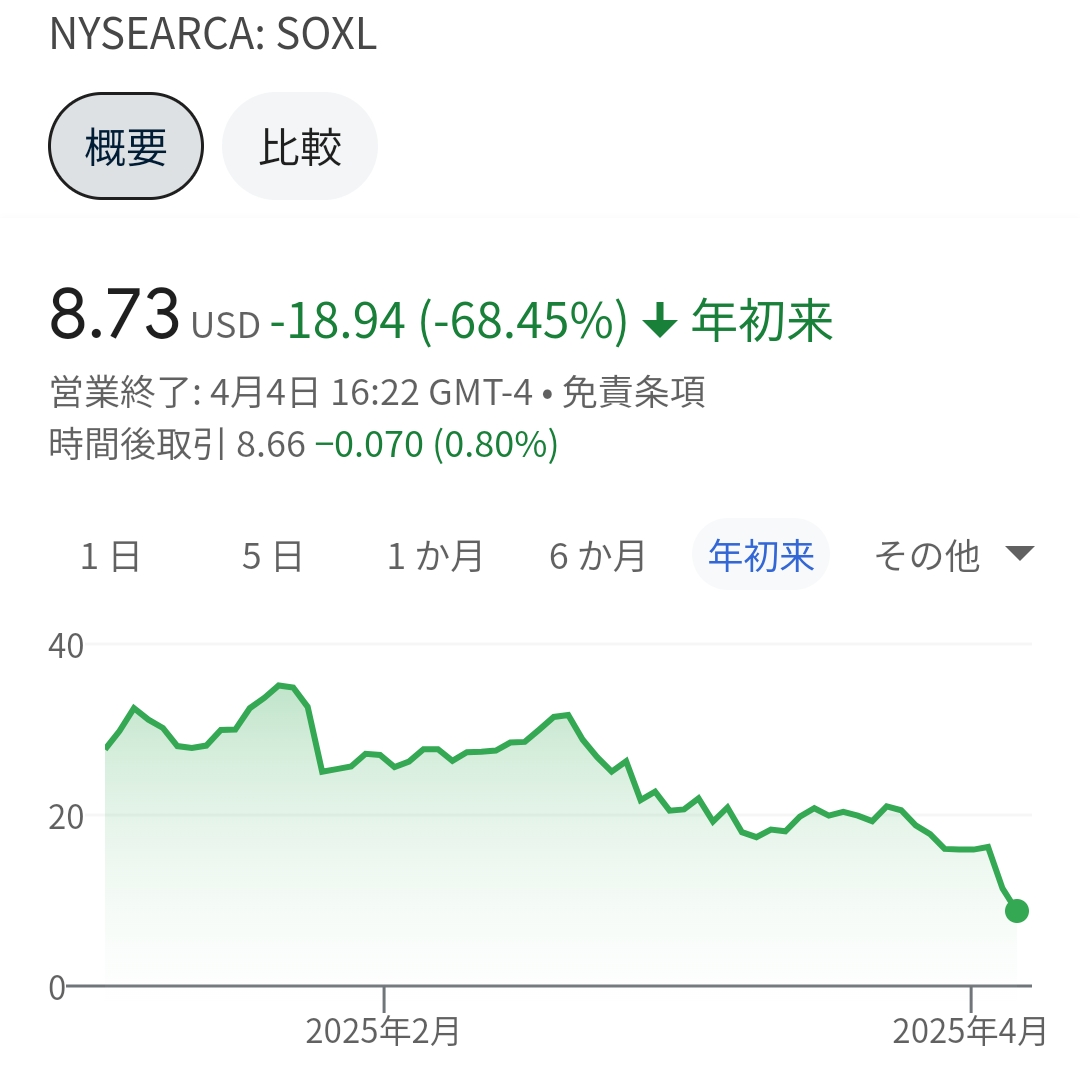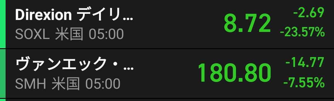 SOXLがまさか、ひと桁台になるとは!!