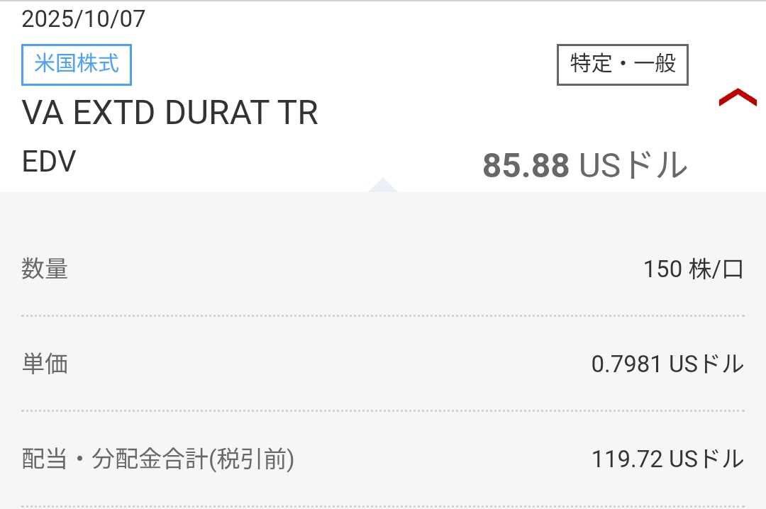 【EDV】また1株定期購入! 151株に!('ω') 2025.10.15