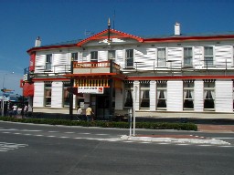 念願のネイピアへ、3泊4日で行ってきました。日本人なら、誰でも知っている所なのよ。ネイピアの港から、日本にあるものが輸出され、商品名にもなっているのです。なあんだ?正解は、ティシューの名前。パルプの輸出港なのです。しかし、海外旅行のパンフレットに、ネイピアが載っていることはまず、ありません。ウェリントンから、車で約4時間。飛行場もありますが、とても小さいです。日本から行こうと思ったら、オークランド経由で、バスの旅、6時間といったところでしょうか。これは、途中でランチを食べたタヴァーン。ホテルとレストランが一緒になっているものです。中の階段。ここから上が、宿泊者用。あまりに古い電話。使っていたりして。ランチは、フィッシュ&チップスとか、ラムのローストとか。まあ、美味しかったけど、夜まで胃がもたれて困りました。そして、着いたネイピアの町。何故、ここに来たかったのかというと、町全体がアール・デコで統一されているからなのです。わかりますか?ビルのデコレーション。かわいいビルがたくさんあるのです。