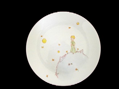 「星の王子様」は、高校2年生の夏休みに軽井沢の学校の別荘で読みました。その時の強烈な印象は今でも鮮明です。昔、子供だったあなたにというメッセージも、大人には見えない象の絵も、おとなになりかけの私にとって、切実でした。何かを失ってしまいそうで、私は怯えていました。そんな時、この本を読んだのでした。お皿を描きながら、もう1度、ゆっくり本を読み返しました。私は、あれから、何を得、何を失ってしまったのでしょう。私は、年を取り、壊れた飛行機の修理に追われ、砂漠に一人で途方に暮れているのでしょうか。夕日を見て、椅子を後ろにずらしながら、何度も夕日の沈むのを見て、その悲しい夕焼け色にどっぷりつかって時を忘れる。そんな時間を、最近、過ごしたでしょうか。そして、小さな棘で身を守ろうとする、薔薇の花の気持ちを、私は、忘れずにいるのでしょうか。星の王子様ショップ、5億の鈴