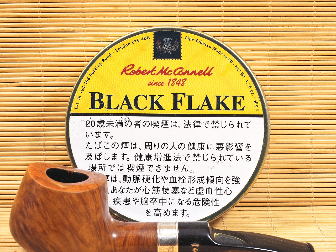 今回はロバート・マッコーネルの「ブラックフレイク」を吸っています。この煙草を最初にレポートしたのは、2020年2月の事でした。 この煙草、国内のショップさん等からの情報(恐らく輸入元が情報源)では「熟成されたダークバージニアのフレイク」とされているのですが、私の最初のレポートでは「もしかしてペリクが入っているかも」と書いています。今回もペリクっぽい喫味を感じたので、改めて調べてみると、海外のネットショップさんからの情報では「Dark Virginia, Black Cavendish and air-cured Perique were pressed into a flake」とあり、やはりペリク入りのブレンドである事が分かりました。おぉ、当時の私の感覚もあながち捨てたもんではなかった!\(^o^)/ ってか、素人の私でもペリクを感じ取れているのに、玄人のはずの輸入元がペリクの存在をすっ飛ばしてしまうとは、どういう事なんでしょう。ブレンド内容の情報として欠かせないくらいの存在感が、この煙草のペリクにはあるように感じるのですが・・・。もしかして輸入元の担当者さんは、自社商品を吸う事なくブレンド情報を書いていたりするんでしょうか。 という事で、この煙草が私の好きなバージニア&ペリク系のフレイクである事がはっきりして、ホクホク顔の私なのでありました。美味しい煙草です。[ホクホク顔の煙草ブログは此方 Click!]