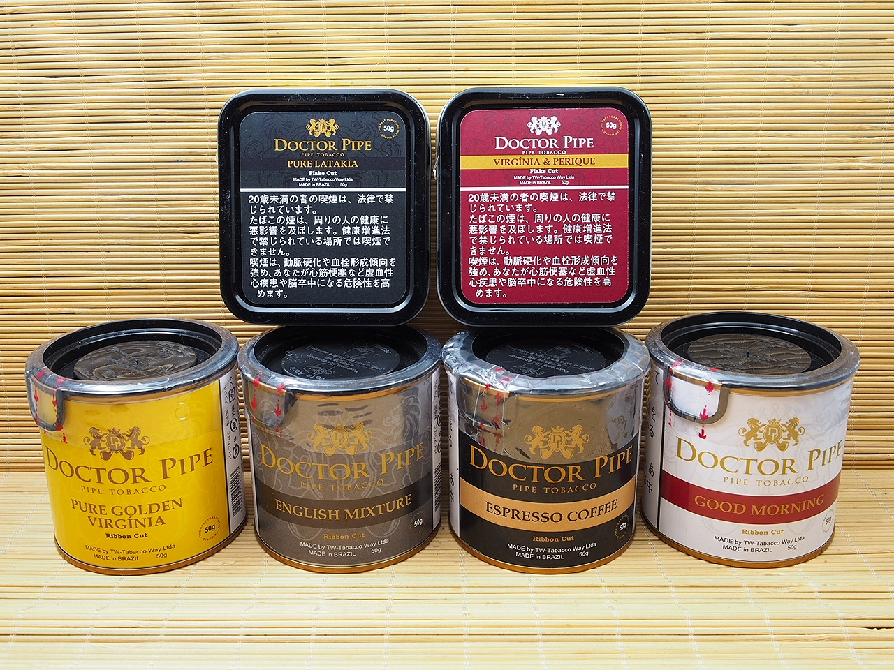 今月分の煙草の買出しに行って来ました。購入したのは上の写真の通りです。 何やらブラジルの煙草メーカー「Tabacco Way Ltda」社のパイプ煙草ブランド「ドクターパイプ」シリーズの輸入が始まったとかで、早速幾つか買って来ました。予定では、来月と再来月もこのブランドの煙草ばかりを買うつもりで、それだけの銘柄数が一気に入って来た感じです。 ブラジルで作られたパイプ煙草というのは自分としては初めて吸います。試験的な輸入だとチラッと聞いたのですが、その割りには日本仕様に印刷されたラベルになっており、結構な本気度です。 という事で、これから暫くの間は、このブランドの煙草を吸いまくる事になりそうですから、レポートをお楽しみに![結構な本気度の煙草ブログは此方 Click!]