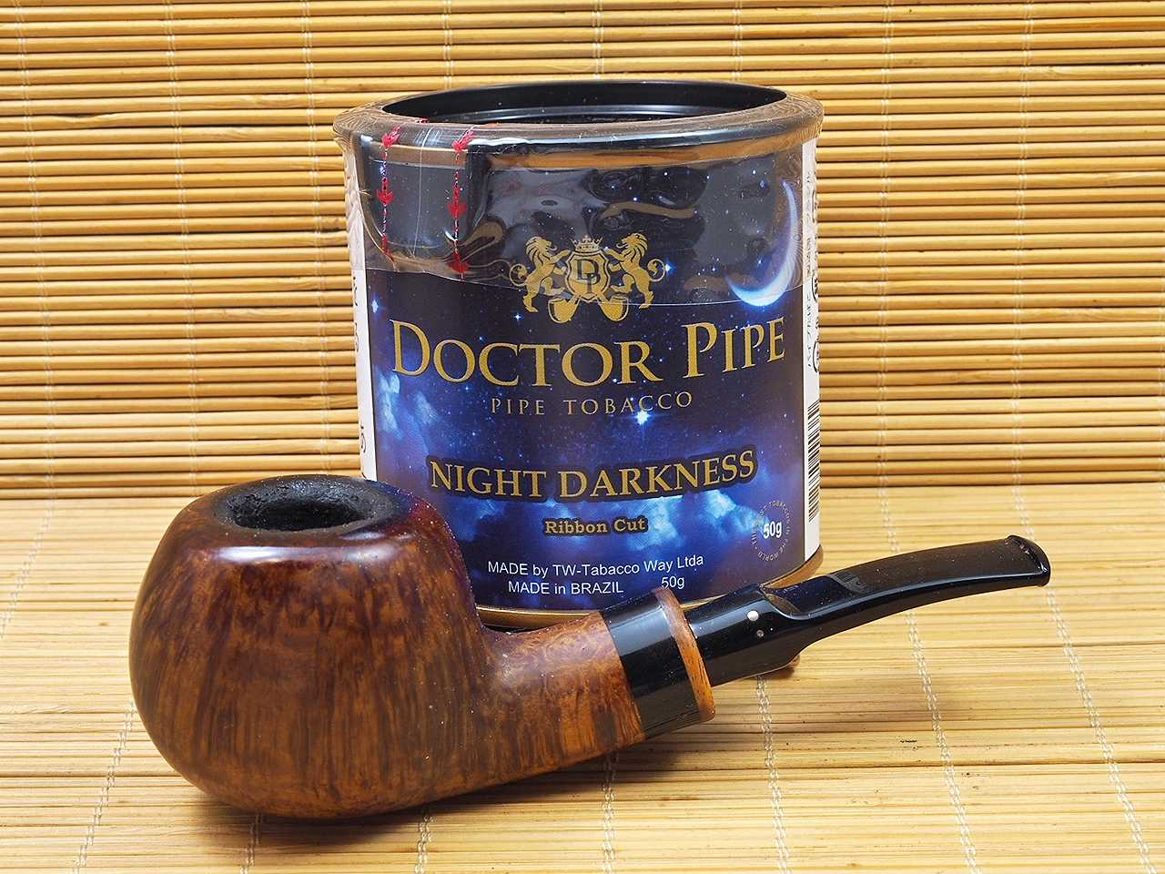 今回レポートするのはドクターパイプの「ナイトダークネス」です。輸入元の解説では、バニラ着香に隠し味でラタキアが入るという、所謂「着香ラタキア物」のようです。どんな煙草なのでしょう。早速開けてみます。 開封時の香りは、そんなに強くはありませんがバニラです。かなりマイルドなバニラ香です。ラタキアの臭いは、う~ん、良く良く探してみると微かにあるようにも感じますが、意識しなければ殆ど気付きません。カットはリボンとラフで、湿気は普通だと思います。 これを火皿内径20mmのパイプに詰めて着火しますと、強くないバニラで着香された紅茶系の味と香りが来ました。紅茶系と言っても、一般的な紅茶系の味と比べると、甘味よりコクと旨味が強い感じがするので、そこが隠し味として使われているラタキアの効果なのでしょう。対してラタキアの臭みは殆ど感じないので、知らなければラタキア入りだとは思わないのではないでしょうか。こういう臭みを出さずにコクと旨味を活かすというラタキアの使い方には、個人的に非常に好感が持てます。 火付きと火持ちは普通ですので、テクニック的には何の問題もなくスイスイ吸えると思います。また、高火力で再着火してもラタキアの臭みが出ないので、本当にラタキアのブレンド比率は少なそうです。 喫煙中盤でも喫味の変化はありません。弱いバニラで着香された紅茶系の味わいです。バーレー由来と思われる刺激が少々ある物の、気になる程ではありませんし、ラタキアの臭みもありません。これだけラタキアの存在感がないのであれば、外出前に吸っても匂いを気にする必要はないのではないでしょうか。 喫煙終盤になると、着香分が薄れて、バニラなしの紅茶系の喫味になります。元の着香が然程強くないので、この流れは当然と言えます。ただ、ラタキアの姿は相変わらず殆ど見えないので、普通の微着香煙草のような感覚で吸い続けられます。 という事で喫煙終了。後味は紅茶系で、残り香は微かなバニラ入りの焚火系でした。 全体的に見て、コクと旨味にラタキアらしさが垣間見えるものの、それ以外ではラタキアの存在を見つけ出すのが困難な微着香煙草でした。 ラタキア好きの方がラタキアを期待して吸うと、完全に肩透かしを食らう煙草だと思います。逆に、非ラタキアの微着香煙草だと言われて吸っても、全く違和感を感じません。このブランドで使われる臭みの少ないラタキアだからこそのブレンドで、一般的なラタキアを同じ割合でブレンドしていたら、もっとラタキアの姿が見える煙草になったのではないでしょうか。そういう意味で、独自性の高い煙草だと思います。[独自性の高い煙草ブログは此方 Click!]