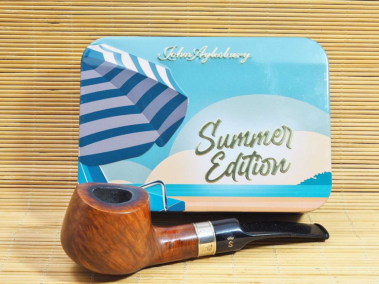 何時も限定物ばかりでレギュラー品の輸入がないジョン・エイルズベリーから夏向け限定100g缶「サマーエディション2025」が入荷していたので買ってみました。製造はコップ社です。・・・ってか、コップ社ってジョン・エイルズベリーの他にもラットレーと自社のコップ社ブランドからも限定100g缶を幾つも出していて、やはり限定100g缶を出しまくっていた嘗てのピーターソンを彷彿とさせます。ま、ピーターソンは製造元がスカンジナビアン・タバコ・グループ(STG)なので、立場的には今回のジョン・エイルズベリーと同じになりますから、当時はより狭い範囲から高密度に限定品を出していたという事にはなりますが。 そういう訳で、早速開けてみましょう。 開封時の香りは果物系です。それもパッションフルーツのような南国の果物系です。夏向けの限定煙草としてはピッタリの着香だと思います。カットは基本的にラフで、湿気はこの手の着香物としては普通くらいではないでしょうか。 これを火皿内径20mmのパイプに詰めて着火しますと、開封時と同じ南国フルーツ系の香りと、やはり南国フルーツ系の味が来ました。絶妙に甘味と酸味がバランスしている美味しい味です。やっぱり私は果物系の着香が好きだなぁ・・・。 火付きと火持ちは普通です。特段癖もないので吸いやすいと思います。 喫煙中盤に入る辺りから舌と喉を刺す刺激が出て来ました。ブレンドされているブラックキャベンディッシュのベースとなっているであろうバーレー葉によるものと思われます。こういう着香煙草では普通の事なのですが、ちょっと早め且つ強めのような気がします。そこ以外の喫味に関しては、序盤と変わっていません。 喫煙終盤になって来ると着香が抜けて来て、ちょっと薄味になります。且つ刺激はそのままなので、トータルで少し硬質な喫味に感じます。まぁ、これも着香煙草では良くある流れなので、特に欠点と言う程のものではありませんが、ちょっとお高い限定物でこれというのは、少し残念かも知れません。 という事で喫煙終了。後味は刺激があって硬質な果物系で、残り香も果物系でした。 全体的に見て、南国フルーツ味の美味しい煙草だとは思いますが、割りと一般的な着香煙草の範疇にある喫味の流れだったと思います。 まぁ、これだけ限定100g缶を頻発していると、どうしてもバリエーションを増やしやすい着香物が多くなると思いますし、限定らしい傑作着香ばかりを作り出す事も難しいと思います。企画&開発期間も短くなるでしょうし・・・。そういう意味で理解できる範囲の出来だと思います。何より南国フルーツ味が美味しい煙草ですから、それだけで十分です。[傑作煙草ブログは此方 Click!]