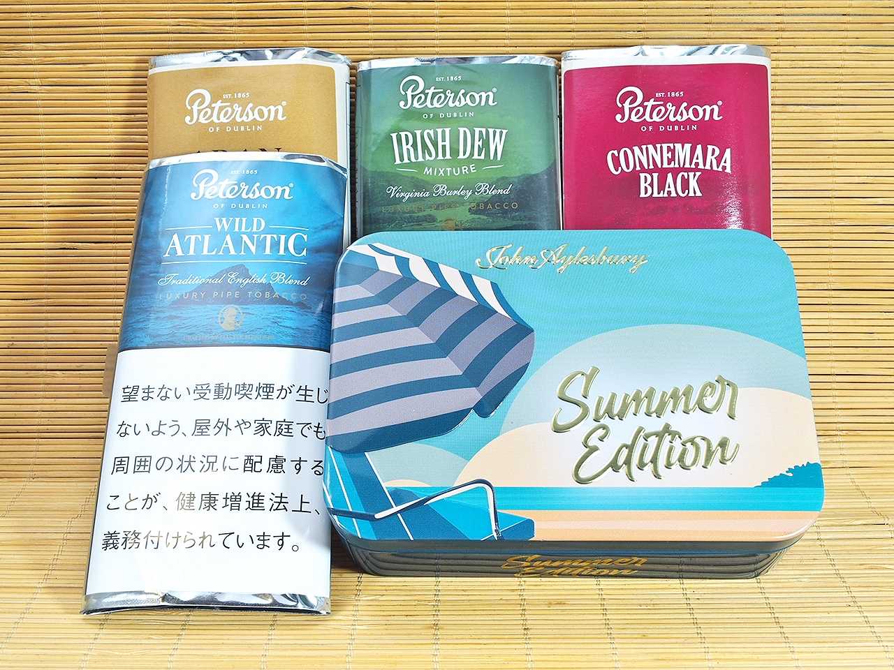 今月分の煙草の買出しに行って来ました。購入したのは上の写真の通りです。 最近では割りと珍しくなって来たと思いますが、夏向けの限定物が入荷していたので、まずはそれを買っています。後はピーターソンのパウチ物を4銘柄です。 暦の上では既に秋になってるというのに、夏向けの限定物を買うというのもどうなんだ?と思ったりもしますが、まぁ気温的にはバリバリ夏ですし、よろしいんではないでしょうか。 という事で、各銘柄のレポートをお楽しみに![珍しくなって来た煙草ブログは此方 Click!]
